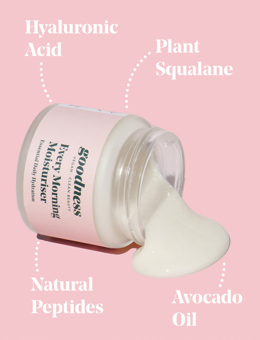 Our Goodness team takes clean beauty seriously. Our products use the very best naturally derived non-toxic ingredients, consciously packaged with sustainability in mind. Always cruelty free, and 100% vegan, our new formulations give you the power of plants across our whole range. Our new packaging is cleaner, greener, and better for you, and the planet.